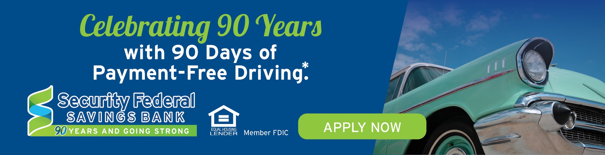 · To qualify for 90 days no payments, you must set up an automatic ACH payment. Additional restrictions may apply. Security Federal Savings Bank reserves the right to discontinue the offer at any time.